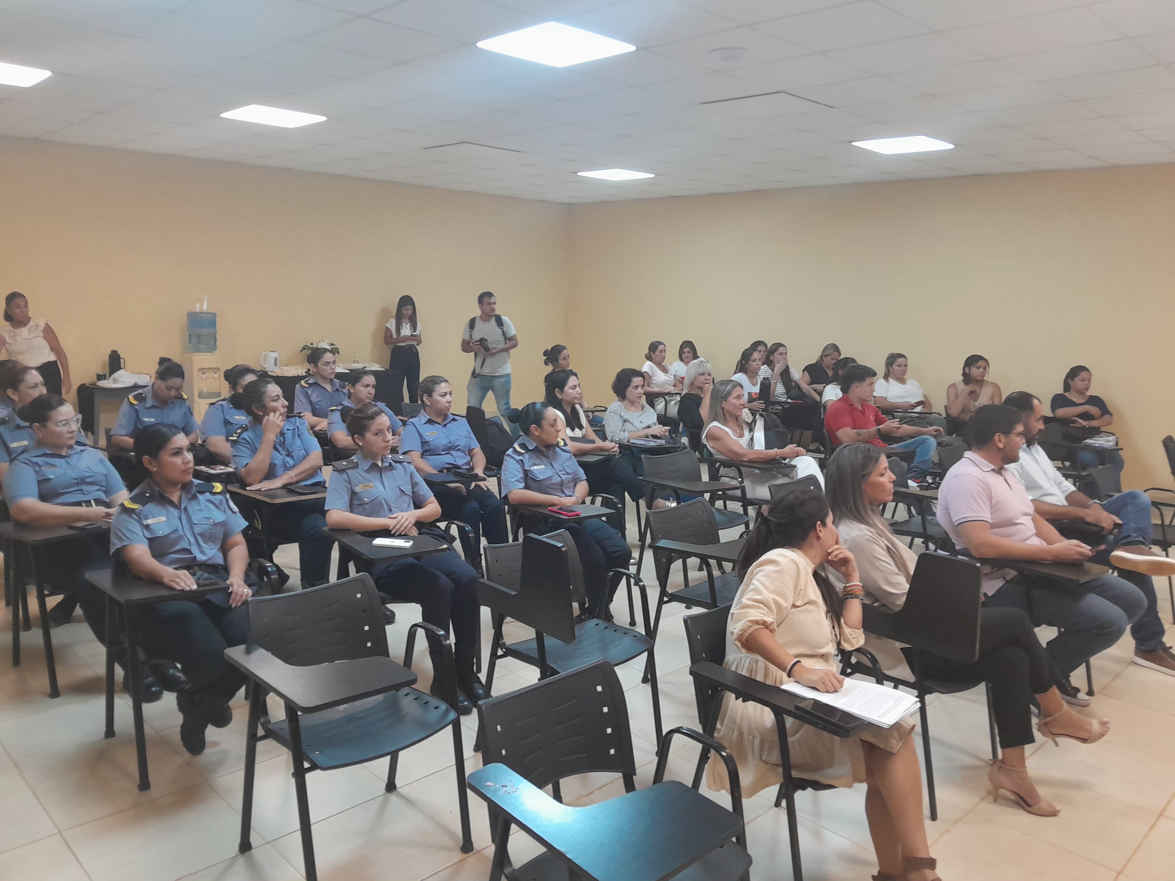 La capacitación, de carácter abierto, estuvo dirigida principalmente al personal femenino de la Policía de Corrientes con sede en Santo Tomé, aunque también contó con la participación de público en general interesado en la temática. Durante la jornada, se abordaron diversos aspectos relacionados con la Ley Micaela, incluyendo su marco normativo, los conceptos clave de género y violencia de género, y las herramientas para la detección y prevención de situaciones de violencia.